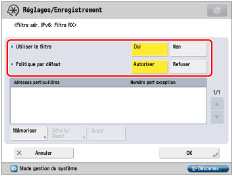 Il est possible de mémoriser jusqu'à 16 numéros de port pour les adresses IPv6 ou préfixes d'adresse IPv6.