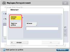 Si [Adresse manuelle] demeure vide, il est impossible d'utiliser une adresse manuelle. De plus, aucune des adresses suivantes ne peut être définie pour [Adresse manuelle] :