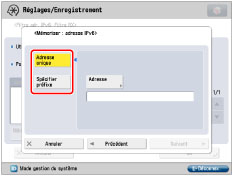 Si l'option <Utiliser DHCPv6> est réglée sur "Oui" à l'étape 7, l'adresse IPv6 d'un serveur DNS qui a été spécifiée manuellement sera remplacée.