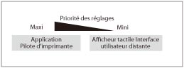 Lorsqu'il est possible de définir indifféremment une fonction de menu en utilisant les touches de la machine ou en définissant les réglages dans l'application ou le pilote d'imprimante, c'est le réglage défini dans l'application ou le pilote d'imprimante qui est prioritaire.