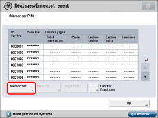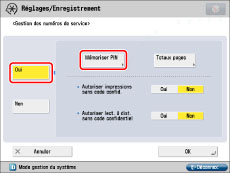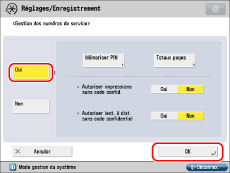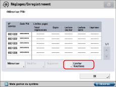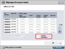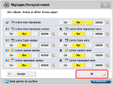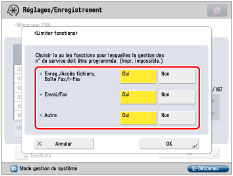 (limite de pages) en regard des touches [Oui]/[Non] pour chaque fonction souhaitée.