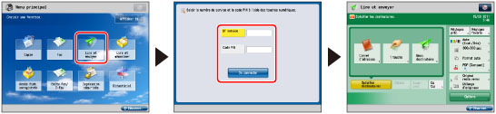 En cas de gestion de la machine à l'aide de cartes et si une fonction a sa limite définie sur "Non" dans [Limiter fonctions], l'écran Menu principal apparaît lorsque la machine démarre. Dans ce cas, exécuter la procédure à partir de l'étape 1 sans insérer de carte.