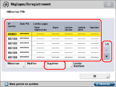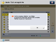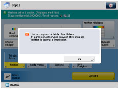 .La limite de pages peut être comprise entre 0 et 999 999 pages. Une fois cette limite atteinte, la copie, la lecture ou l'impression n'est plus possible.