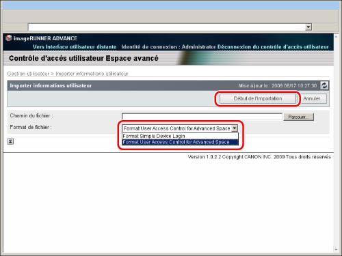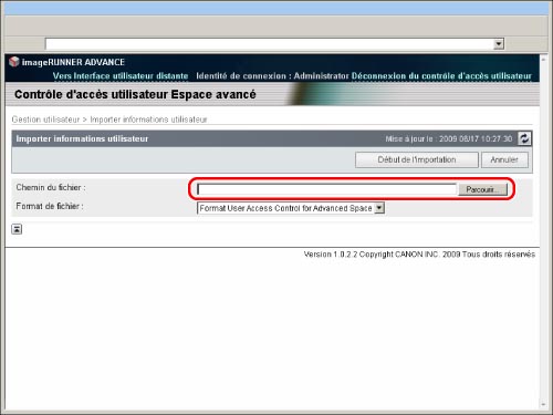 Si le même nom d'utilisateur est déjà mémorisé, ces informations utilisateur ne sont pas importées. Seules les informations utilisateur correspondant à des noms d'utilisateur qui n'ont pas été mémorisés sur cette machine sont importées.