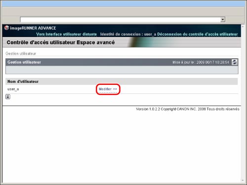 Les simples utilisateurs de [Contrôle d'accès utilisateur Espace avancé] peuvent changer leur propre mot de passe.