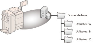 Si le dossier de base est défini sur le serveur WebDAV, les dossiers pour tous les utilisateurs doivent être préparés en avance.
