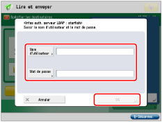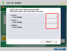 Utilise les informations d'authentification définies sous [Mémoriser serveur LDAP]. (Voir "Mémorisation d'un serveur LDAP".) D'autres réglages ne sont pas requis pour chaque utilisateur.