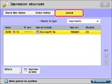 Permet d'imprimer la liste des statuts des tâches. Pour imprimer la liste, appuyer sur [Imprimer la liste] → [Oui].