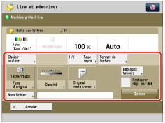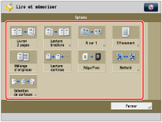 Il est possible de mémoriser jusqu'à 999 pages. Si les originaux lus via le chargeur sont des originaux recto verso, il est possible de mémoriser jusqu'à 1 000 pages. Une fois le nombre maximum d'originaux atteint, un message s'affiche demandant si les autres pages doivent être mémorisées.