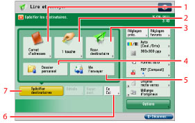 Pour accéder à d'autres modes de lecture et d'envoi et les utiliser. Des fonctions d'envoi utiles telles que l'envoi simultané d'originaux de formats différents ou l'envoi d'originaux recto verso peuvent être définies.