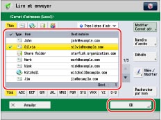 Appuyer sur [Lire et envoyer] → [Carnet d'adresses].