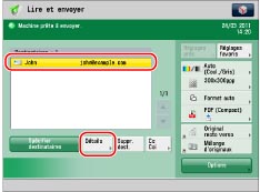 Si le destinataire a été spécifié à partir du carnet d'adresses (Serveur LDAP) :