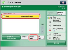Sélectionner le destinataire à supprimer → appuyer sur [Suppr. dest.].