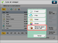 Appuyer sur [Lire et envoyer] → [Carnet d'adresses].
