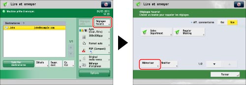 Si l'on importe souvent des réglages dans un bouton Réglages favoris vers une autre machine mais que l'on veut définir un mot de passe dans les réglages stockés dans le bouton mémorisé tout en empêchant toute utilisation illicite, exclure un mot de passe lors de la mémorisation.