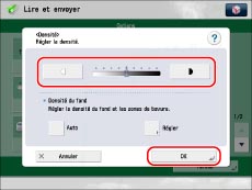 Spécifier le destinataire → appuyer sur [Options] → [Densité].