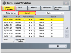 Imprime la liste d'états des tâches. Pour imprimer la liste, appuyer sur [Imprimer la liste] → [Oui].