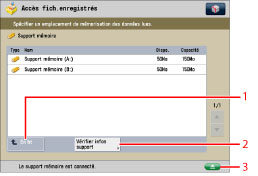 Pour plus d'informations sur les types d'icônes affichées pour le support mémoire, voir "Types d'icônes Espace avancé/Réseau/Support mémoire".