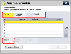 Si le papier utilisé pour les intercalaires est déjà imprimé (logo de société, par exemple), il faut sélectionner [Vierge]. Sans quoi la machine imprimera sur le papier préimprimé.