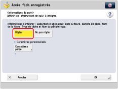 Les informations telles que N°/Nom d'utilisateur, date/heure et nom du périphérique sont intégrées.