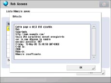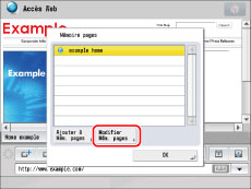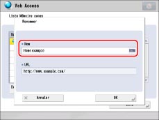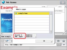 Le nom et l'URL peuvent être modifiés. Si l'URL est modifiée, le contenu de l'écran enregistré ne change pas. L'écran affiché actuellement est enregistré sous forme de mémoire pages.