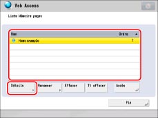 Sélectionner la mémoire pages souhaitée → appuyer sur [Détails].