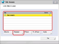 Sélectionner la mémoire pages souhaitée → appuyer sur [Renommer].