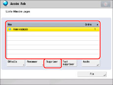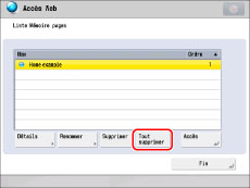 Sélectionner la mémoire pages à supprimer → appuyer sur [Supprimer].