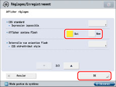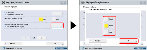 Si [Intervalle vue animation Flash] est défini sur "Court", d'autres opérations, telles que l'impression, risquent de ralentir.