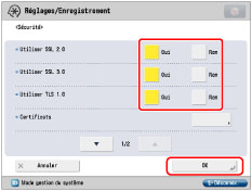 Appuyer sur [Sécurité] → définir chaque réglage → appuyer sur [OK].