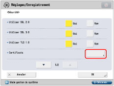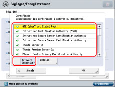Sélectionner un certificat → appuyer sur [Activer/Désactiver].