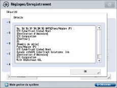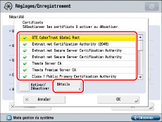 Sélectionner le certificat souhaité → appuyer sur [Détails].