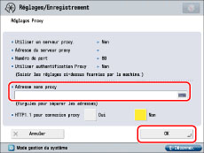 Pour plus d'informations sur la modification des réglages proxy de la machine, voir "Réglages communs à TCP/IPv4 et TCP/IPv6".