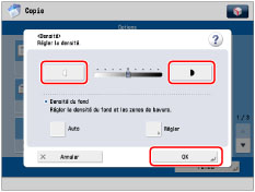 Si la densité est modifiée dans [Options], la modification de la densité pendant la copie risque de n'avoir aucun effet sur la sortie.