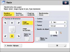 Si le même emplacement d'impression du numéro est sélectionné pour n'importe quelle combinaison de deux modes parmi les suivants : [Numérotation jeux copies], [Filigrane] ou [Date d'impression], un message demandant la confirmation s'affiche lorsque l'on appuie sur