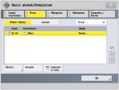 Si [Envoi], [Statut tâches] et [Envoi] sont définis comme Ecran par défaut (Suivi statut/Annulation) :