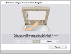[Réglage/Maintenance] → [Maintenance] → [Méthode nettoyage zone de lecture d'original].