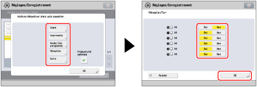 Si la source d'alimentation sélectionnée vient à manquer de papier pendant la copie, une autre source contenant du papier de même format est sélectionnée grâce au réglage Sélection auto. du compartiment papier. Si défini sur "Oui", les sources d'alimentation papier avec différents types de papier ne sont pas sélectionnées même si le format papier est le même.