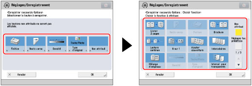Appuyer sur [Réglages de fonction] → [Copie] → [Enregistrer raccourcis Options].