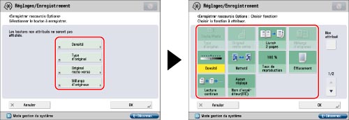 Sélectionner la touche de raccourci → choisir le réglage à mémoriser dans la touche.