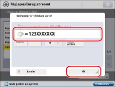 Saisir le numéro de télécopieur à mémoriser → appuyer sur [OK].