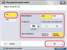 Appuyer sur [Oui] → spécifier chaque réglage → appuyer sur [OK].