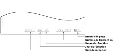 Il est possible de définir l'impression de la date, du jour et de l'heure de réception, le numéro de la transaction et le numéro de page en bas des documents reçus.