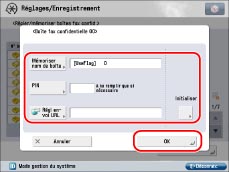 sont utilisées pour saisir un numéro de boîte fax confidentielle, veiller à entrer un nombre à 2 chiffres → appuyer sur [OK].