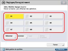 Sélectionner un bouton ([M1] à [M9]) pour mémoriser des réglages → appuyer sur [Mémoriser].