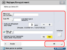 Appuyer sur [Régler/Mémoriser boîtes aux lettres] → appuyer sur le numéro de la boîte aux lettres dont les réglages doivent être enregistrés.