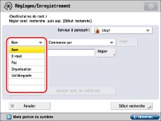 Les catégories de recherche Organisation/Unité organisationnelle peuvent uniquement être utilisées si l'information est répertoriée sur le serveur LDAP.