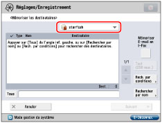 Si [Rech. auto si utilisation serveur LDAP] est réglé sur "Non", l'écran présentant la liste des destinataires reste vide jusqu'à ce qu'une recherche soit effectuée.