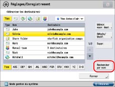 Pour revenir à l'écran précédent, appuyer de nouveau sur [Rechercher par nom].