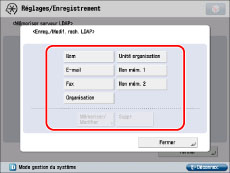 Seuls les deux attributs de recherche affichés par défaut comme "Non mémorisé" peuvent être modifiés. Il est impossible de modifier les attributs de nom, d'e-mail, de télécopie, d'organisation et d'unité d'organisation.